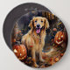 Halloween Golden Retriever With Pumpkins Scary 6 Cm Round Badge