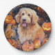 Halloween Goldendoodle With Pumpkins Scary Paper Plate