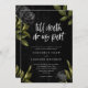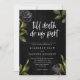 Gothic halloween theme wedding invitation card featuring illustration of black roses. The text says "till death do us part."