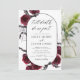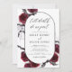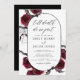 Halloween October 31st Autumn Fall Dark Watercolor Burgundy Wedding Invitations on Black background - includes haunting and scary elegant script typography with modern Flowers and Bat Wings for the special Creepy Wedding day celebration.