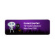 A spooky set of address labels with a cool creepy cute halloween design. Set in a dark and scary graveyard. A gravestone says RIP, with a glowing skull sitting on the ground. An adorable smiling skeleton is waving hello. Set on a black and purple gradient background.