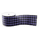 This grosgrain ribbon is shown in a Halloween black and purple diamond pattern design.