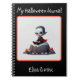 A digital image of a cute grumpy looking vampire sitting on a rock. The words on the top (Halloween Journal) and the bottom (Elisa Gotic) can easily be replaced by whatever words you would like to see there.