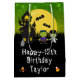 This fun and spooky gift bag can be personalised with a name or title, such as daughter, granddaughter, niece, friend etc. It features cute Frankenstein monsters beside a crooked haunted house. In the background is a full moon with bats and a green night sky with stars. The text combines decorative and serif fonts for a stylish and modern look. This is perfect for Halloween.