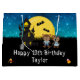 This fun and spooky gift bag can be personalised with a name or title, such as daughter, granddaughter, niece, friend etc. It features cute werewolves beside a crooked haunted house. In the background is a full moon with bats and a blue night sky with stars. The text combines decorative and serif fonts for a stylish and modern look. This is perfect for Halloween.
