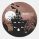 A large black castle and bare trees against a spooky night sky, these stickers are fun for a Halloween costume party, Halloween birthday party or any occasion. MATCHING items in our store.