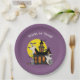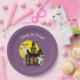 Personalise your Halloween party table with this paper plate printed with a colourful haunted house scene accented with ghosts,bats,spiders, witch's legs and other cute details Created in part with art by Angela Wenke, formerly of resaleclipart.com. Add some matching napkins and more in this same design.