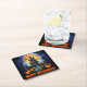 Add a spooky touch to your Halloween table with these coasters, featuring a haunted house on a hill and glowing pumpkins in the foreground. The dark night sky with moon and twisted trees creates a haunting atmosphere, beautifully made in a watercolor and pencil style. On the front, the design includes the customisable text “Happy Halloween”, or you can personalise it with your own message. Perfect for protecting your surfaces while adding festive flair, these coasters are ideal for haunted house lovers, pumpkin fans, and anyone who enjoys spooky Halloween home decor.