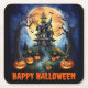 Halloween Haunted House with Pumpkins Party Square Paper Coaster