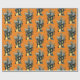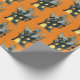 Colourful Halloween themed wrapping paper features watercolor haunted house illustration pattern on pumpkin orange background