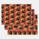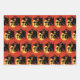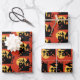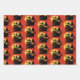 Haunted House wrapping paper sheets, will go perfect on your Halloween night gift! Black bats, witch flying on broomstick, and a ghost in a haunted house on orange background!