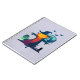 A notebook with a cool halloween illustration. Set on a grey lavender grunge background. A large haunted scarecrow, looking evil with a jack-o-lantern pumpkin head, wearing a witches hat. He has a menacing grin wearing tattered robes and is standing in a graveyard with a crow screeching on his arm. Bats flying off in the distance, a full moon in the background and a lone owl with glowing eyes sits on a tombstone.
