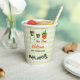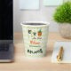 A fun Halloween personalised paper cup for a Halloween housewarming party. It features watercolor paintings of hanging plants (including a jack o'lantern) and a row of gremlin shoes. Matching items available.