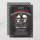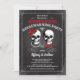 Designed with retro chalkboard, skulls and red roses & bow tie. Back side is decorated with elegant lace graphic.