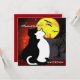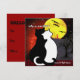 Halloween card invitation with a couple of cats watching the fireworks while a big yellow moon rises in the horizon. Customise it with your own words