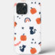 HALLOWEEN DESIGN IPHONE CASE WITH ORANGE, BLACK AND PINK DESIGN.