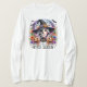 Halloween long sleeved T-Shirt with Witch and Skeleton surrounded by colourful flowers and a pumpkin, with bats and a moon background and "Stay Spooky" words in a cute font. Wear this to let everyone know you're in the halloween, spooky season mood! Great gift for you, friends, coworkers, teachers, neighbours and family members. Or use as your halloween outfit.