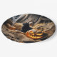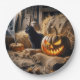 Halloween Jack-o-Lantern and Cat In Barn Paper Plate