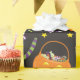 This cute Halloween wrapping paper features trick or treat jack o' lanterns filled with candy on a black background with various candies. Perfect for wrapping your holiday gifts and treats.