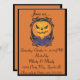 Orange and black jack-o-lantern man invite for Halloween.
