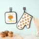 One cute oven mitt with jack-o-lantern pattern and one pot holder with jack-o-lantern you can personalise on top and bottom.