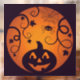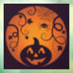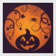 Happy Halloween circle badge with jack-o'-lantern smiling pumpkin