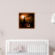 Are you looking for a spooky and unique way to celebrate Halloween? Look no further than this image that captures the essence of Halloween with its sinister grin and eerie glow. The black, pointed witch’s hat adds an extra touch of magic to the scene. Set against a dark, foggy night with a full moon and a bat flying in front of it, this image is sure to send shivers down your spine.