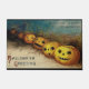 A cute vintage Halloween doormat that features an illustration by Ellen Clapsaddle of a row of jack-o-lanterns in a field of hay with the caption "Curioser and Curioser All halloween".