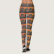 Black and Orange leggings have rows of black jack o'lanterns lined up on black rolling hills with an orange sky. Fun, colourful and perfect for the Halloween season!