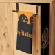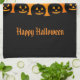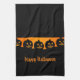 Kitchen towel shown in black with a Halloween pumpkins print. Customise this item or buy as is.