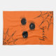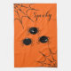 Kitchen towel shown in orange with a Halloween dancing spiders print.