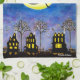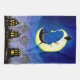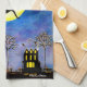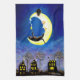 Halloween kitchen towels with a sweet smiling moon and playful black cats. Art titled "Salem's Star" by Christine Altmann