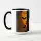 This image displays a Halloween-themed letter "N" formed from dark, twisted branches and roots. It stands prominently against a large, glowing orange full moon. Bats fly around the letter, and a trio of carved jack-o'-lanterns with glowing faces sits at its base. The overall mood is eerie and festive, capturing the essence of Halloween night.