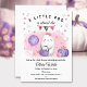 A little boo is almost due. Halloween Little Boo Baby Girl Shower Invitation with a cute watercolor baby girl ghost, pumpkins, hearts, stars, balloon. Baby shower invitation pink and purple editable template. 3 cute stars on the back.