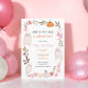 Adorable cute 2nd birthday Little boo Halloween illustrations party invitation, perfect Halloween kid birthday party invite, with cute illustrations featuring cue adorable little ghosts, green, pink , orange flowers, white and orange pumpkins. A little boo is on the way! A not spooky Halloween party.