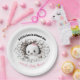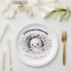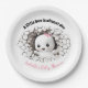 A little boo is almost due, funny and cute Halloween girl Baby Shower Paper Plates in black & white and pink, with an adorable peeking baby ghost. Easily personalise all the text. - Kate Eden Art