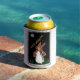 Halloween - Little Girl with Broom and Black Cat Can Cooler