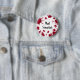 A funny mad scientist pin on button for Halloween or anytime with blood splatters on it.
