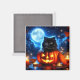 Magnet is shown with a Halloween art print of a black cat sitting in the pumpkin.