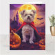 Get your furry friend ready for a howling good time with this adorable dog-inspired Halloween design! Featuring a spooky dog with pumpkins, this design is perfect for pet parents who want to include their four-legged family