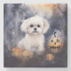 Halloween Maltese With Pumpkins Scary Stone Coaster