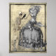 A dark romantic gothic collage of a Halloween masquerade ball, featuring vintage images of a skeleton, a French 18th Century fashion plate, candle sticks, a petrified cat, laid over a background of an actual handwritten testimony from the Salem Witch trials.© Wickedly Lovely