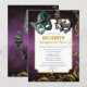 Invite your guests to a glamourous Halloween masquerade party with this stunning invitation. Featuring frightful masks, a purple smoky background, and gold glitter swirls, it sets the perfect tone for an fun and mysterious event.