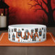 Turn your pup’s mealtime into a spooky celebration with this Halloween-themed dog bowl. Featuring a charming pattern of miniature haunted houses in eerie shades of black, grey, and orange, this ceramic bowl is personalised with your dog’s name for a festive and stylish touch. Made from durable ceramic, this food or water dish is dishwasher safe and printed in the USA.