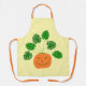 This awesome Halloween apron features a digital art image of a series of leaves from a houseplant called a Monstera, also known as the Swiss Cheese Plant. The leaves are dark green and lobed and some have holes in them. The plant is contained inside a scary orange looking Halloween pumpkin with a wicked grin, sharp teeth and evil eyes.