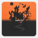 Halloween Night Witch and Bats Hunted House Square Sticker