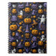 Symmetrical Halloween toon pattern style with pumpkins, flying bats, skulls