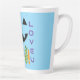 HALLOWEEN OLOURFUL LOVE BOO Latte Mug. Halloween CupJ Love Boo Colourful Letters Polka Dots Stripes Halloween Decor FestivE Party Supplies. The image you provided shows a light blue cup with a Halloween theme. It features a black jack-o’-lantern face and the words “LOVE BOO!” written vertically in colourful, stylised letters. Each letter in “BOO!” has a different pattern: the ‘B’ is purple with white polka dots, the first ‘O’ is orange with black stripes, and the second ‘O’ is green with white polka dots.