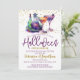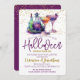 A gorgeous purple and gold halloween Open House party invitation. This fun purple and green design features spooky magic potion bottles and two cocktail glasses. Easy to customise with your own halloween party details.