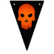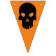 A banner with alternating orange and black flags with alternating orange and black skulls. For your Halloween decorating or Halloween party.